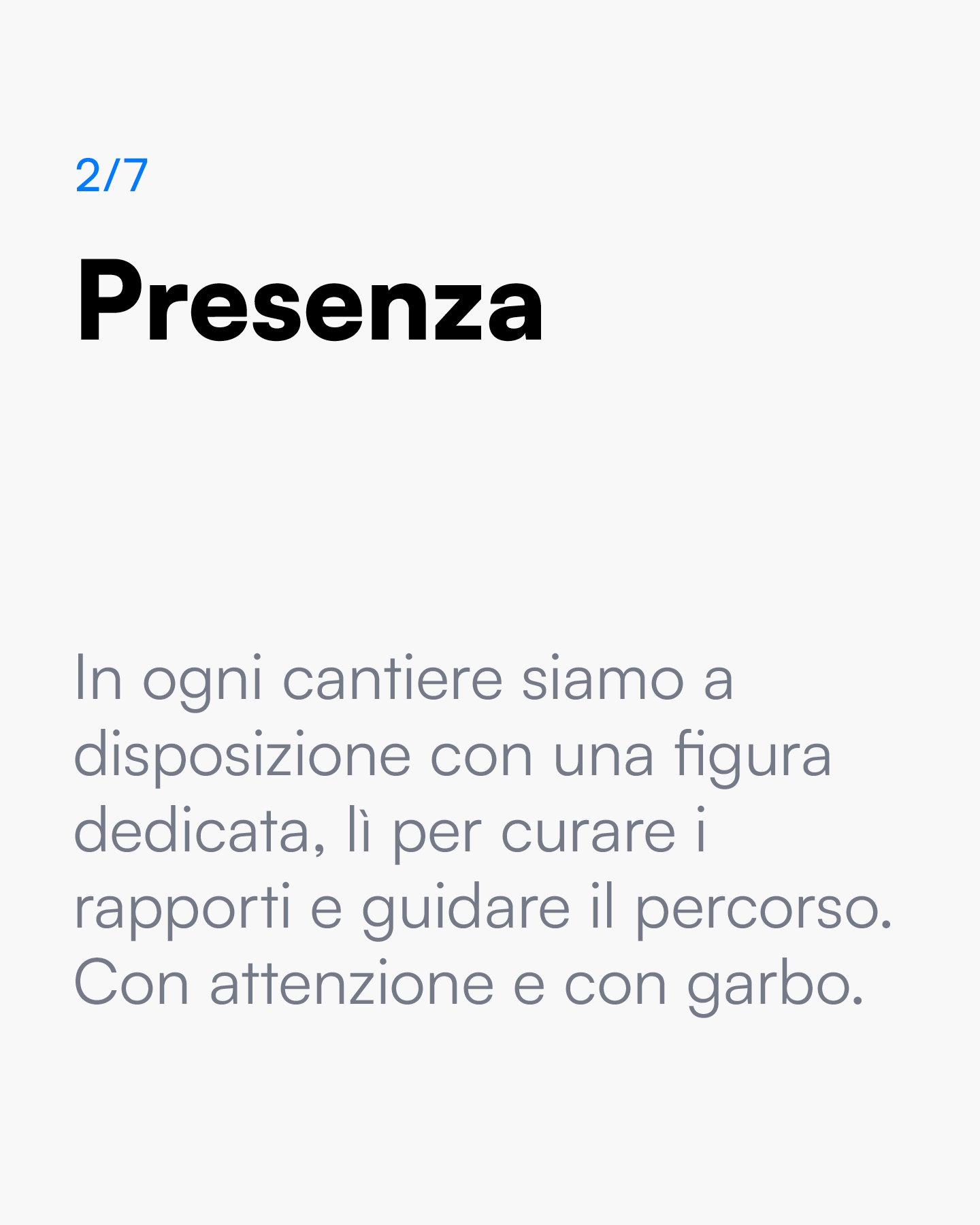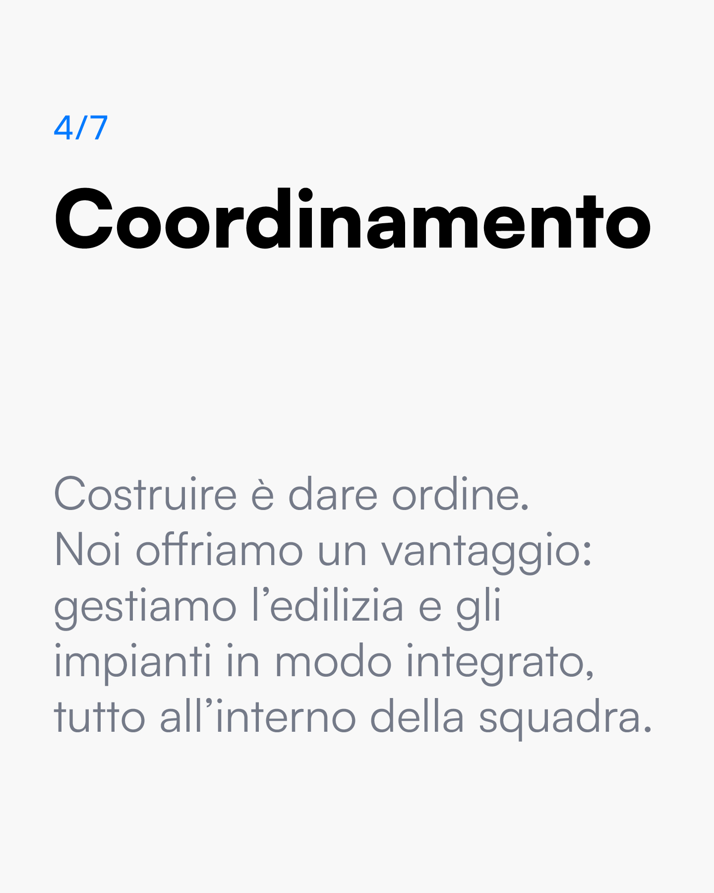 Ai proprietari offriamo serenità, con la presenza di un riferimento dedicato e un gruppo con più competenze insieme, capace di integrare edilizia e impiantistica. A chi progetta diamo collaborazione: un sostegno tecnico, con tanto senso pratico e la disponibilità a concentrarsi sulle lavorazioni più complesse e decisive.