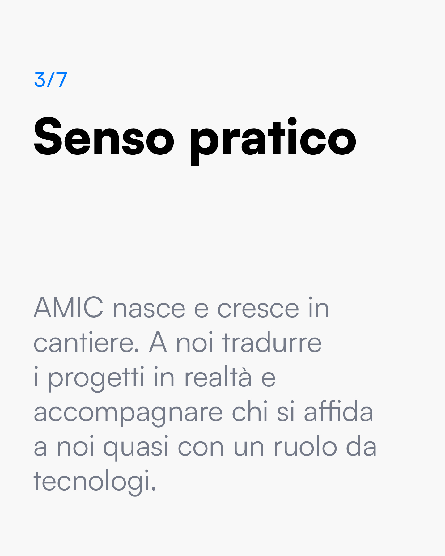 A.M.I.C. è la società di costruzioni che unisce all’esperienza di cantiere una forte sensibilità per l’architettura. Il nostro lavoro è comprendere il valore dei progetti, capire cosa li rende speciali, e realizzarli con risolutezza e disponibilità.